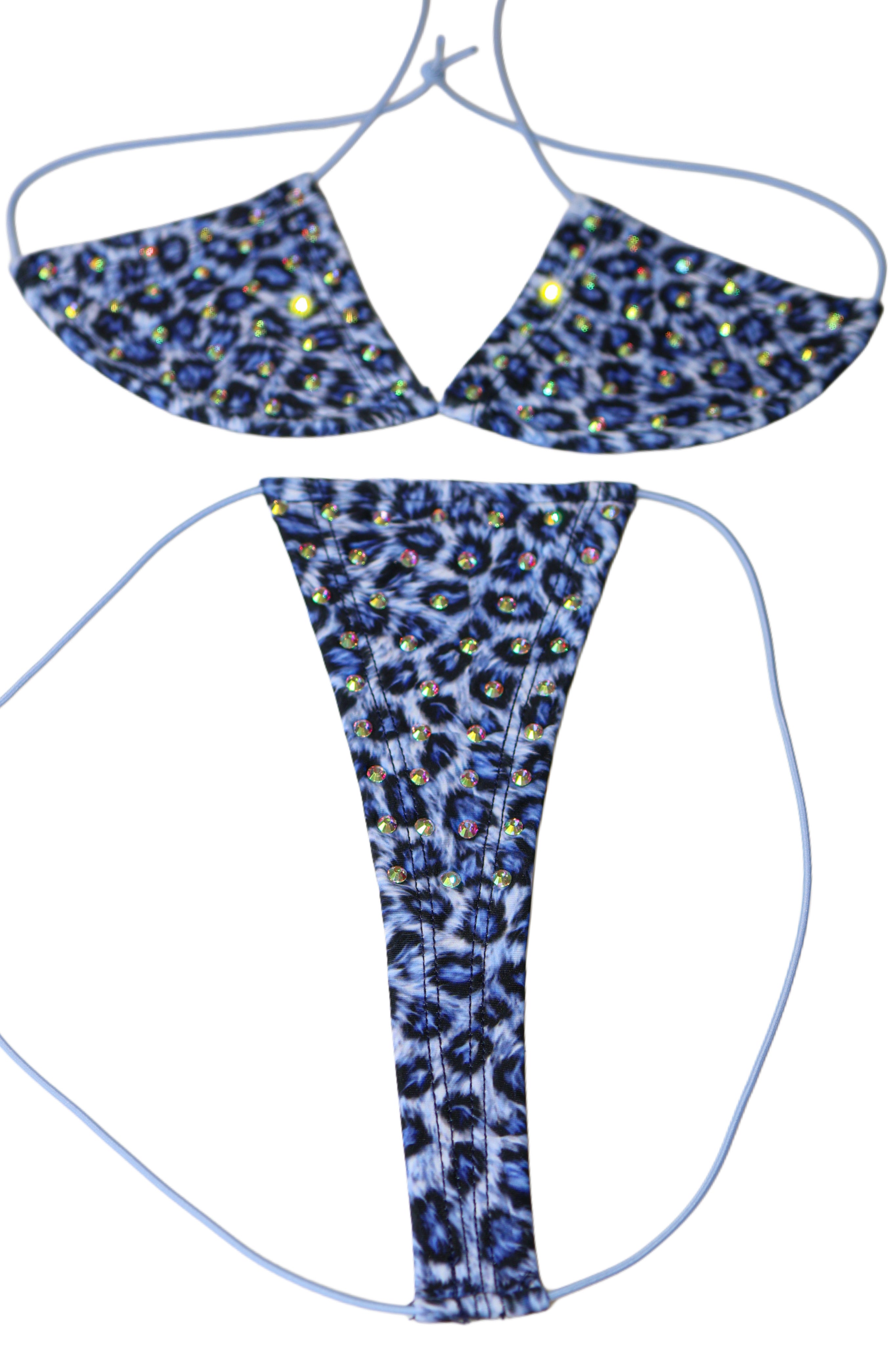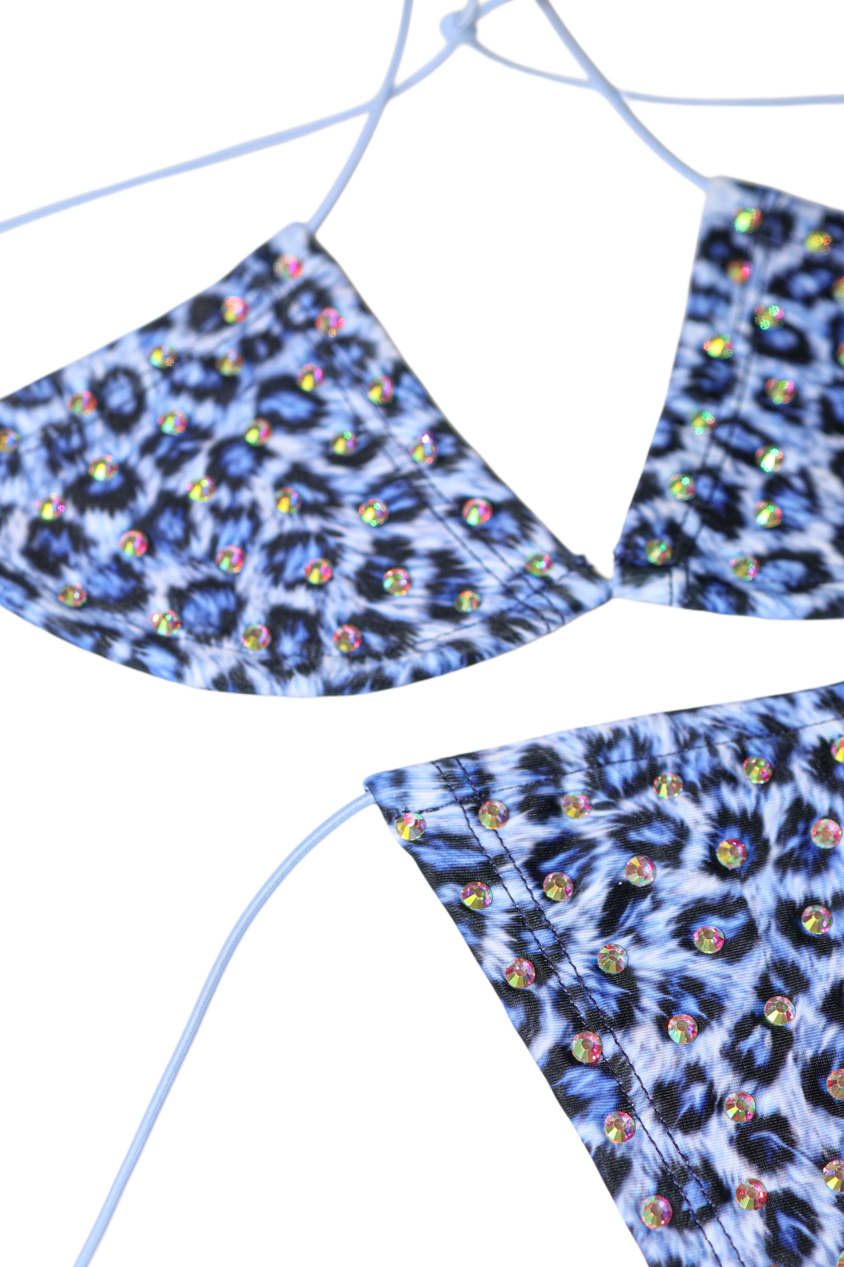 Blue leopard rhinestone string microkini