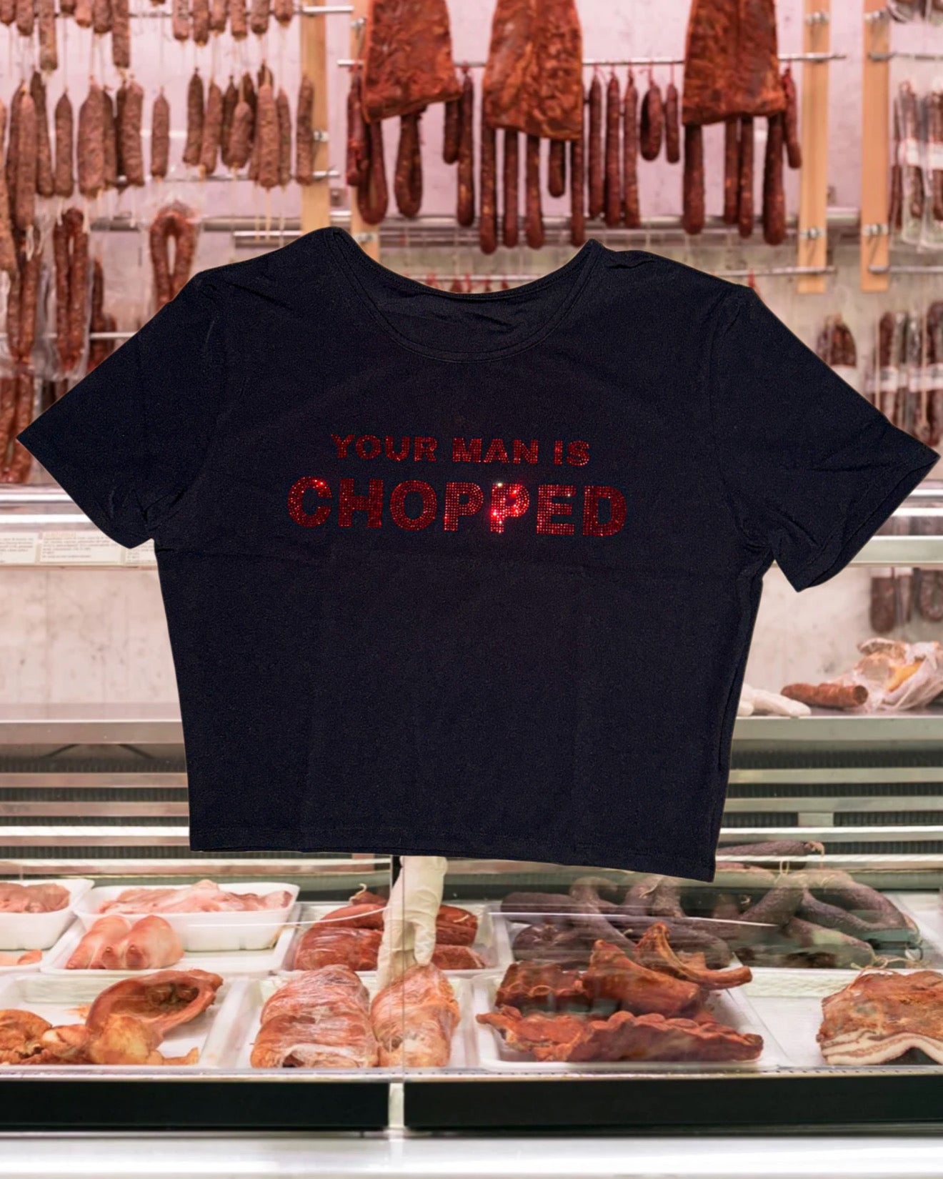 Chopped rhinestone crop top