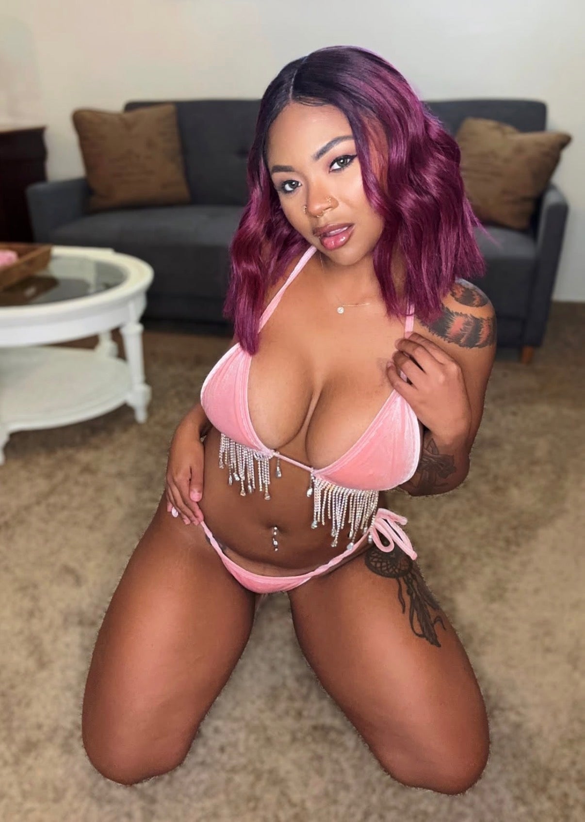 Pink velvet iced out drip bikini