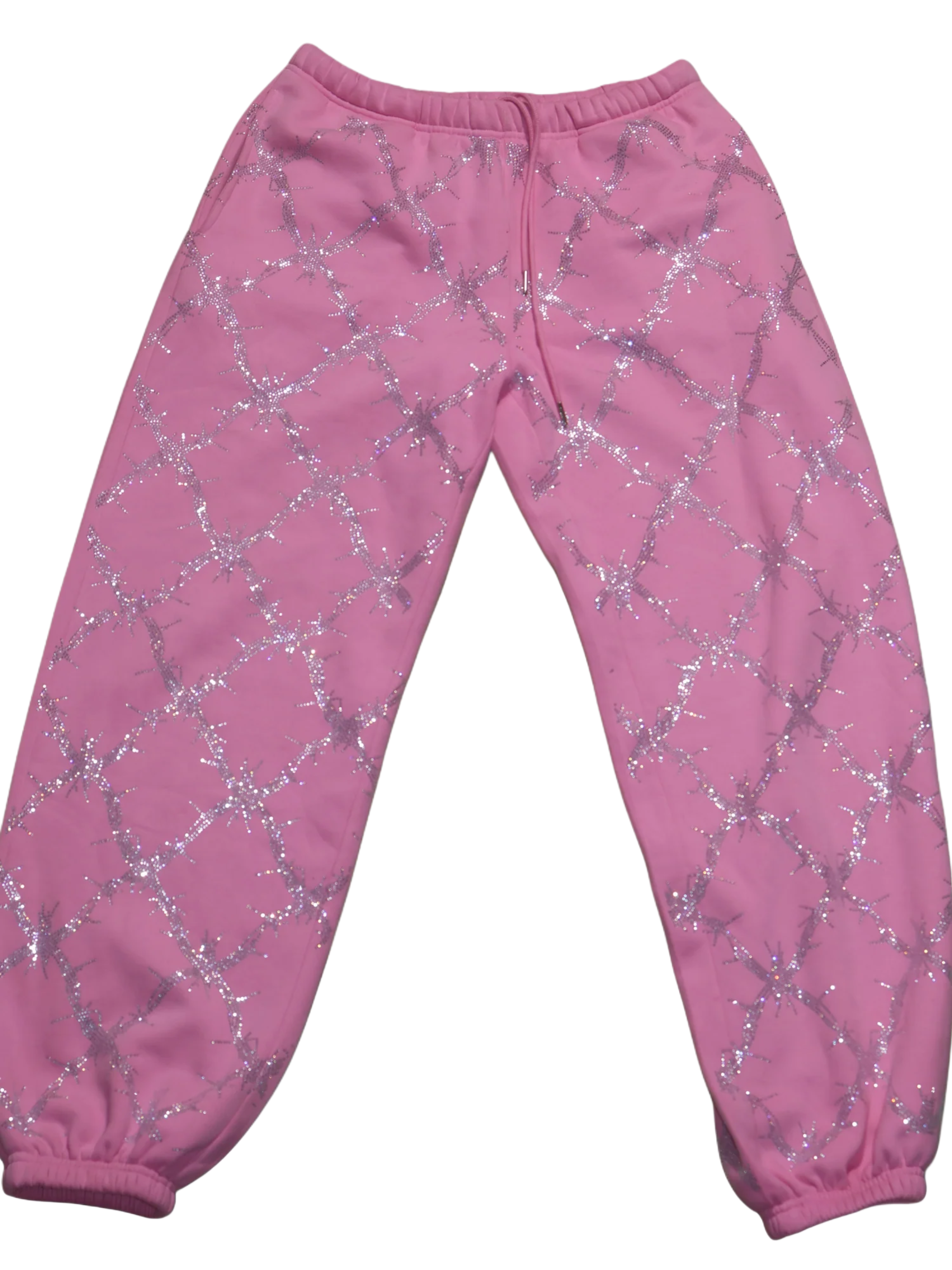 Baby pink barbed wire fence rhinestone sweatpants