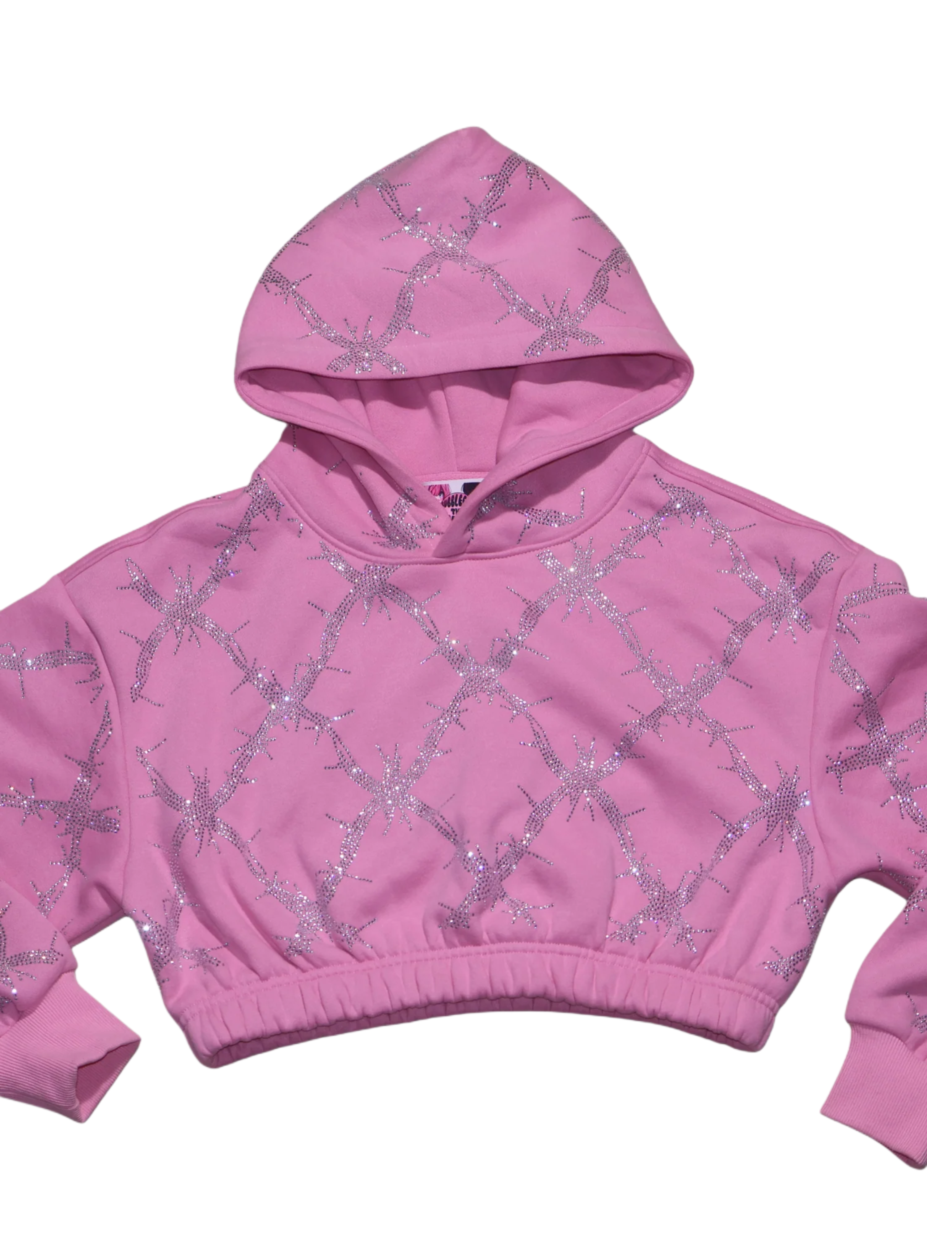 Baby pink barbed wire fence rhinestone crop hoodie