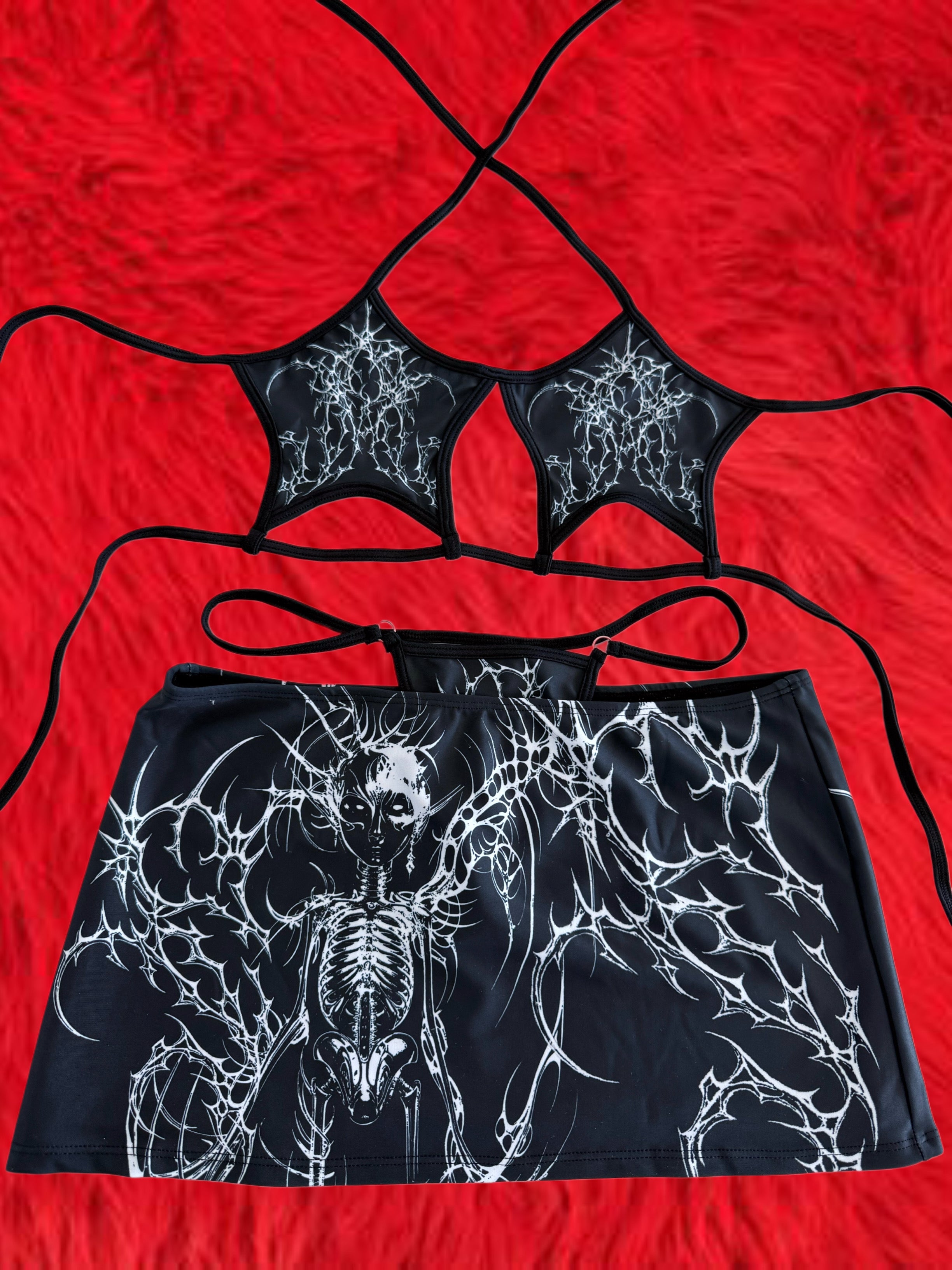 Cyber sigilism skeleton miniskirt set