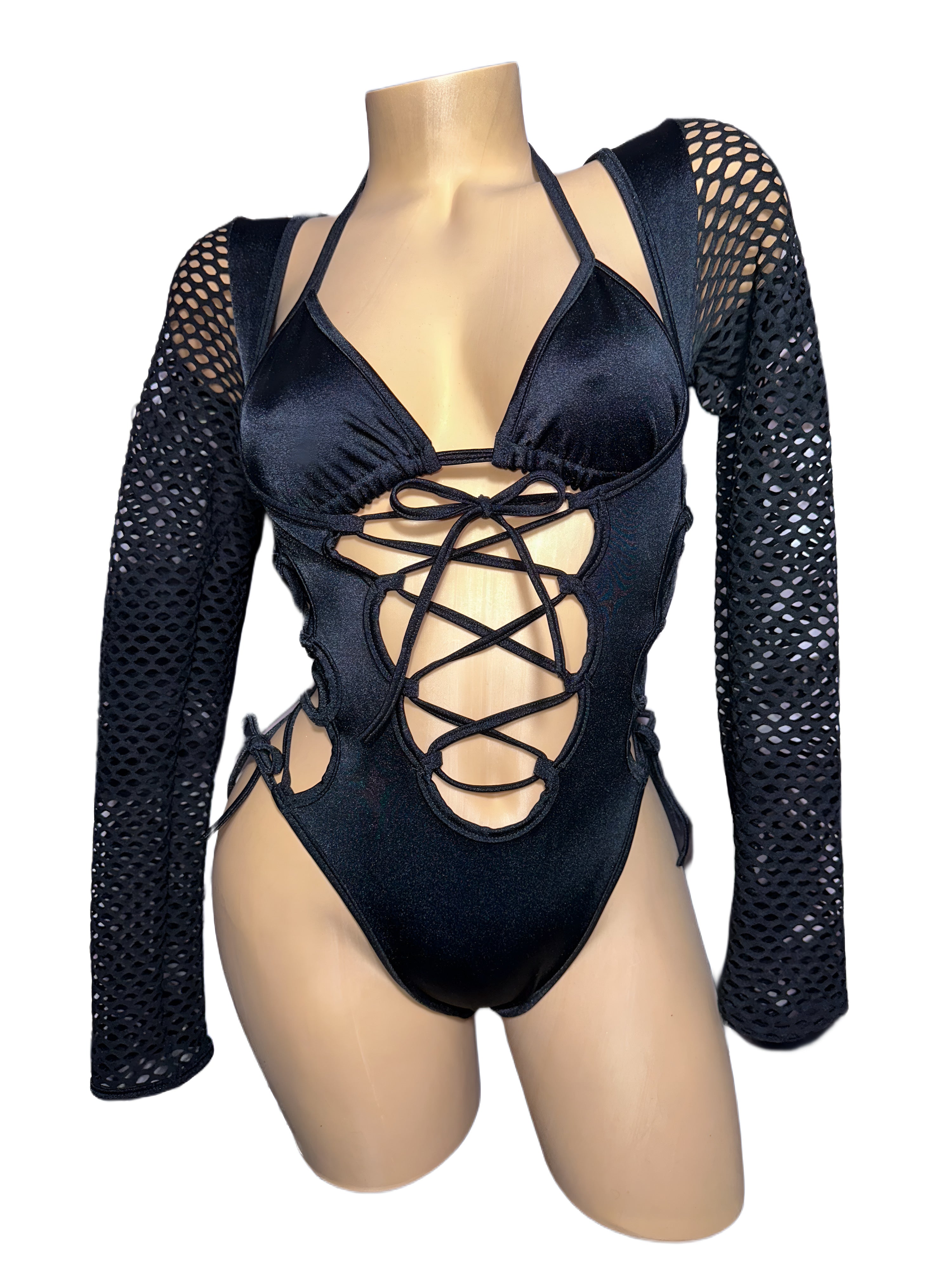 Mooncatcher rhinestone heartless one piece set with sleeves