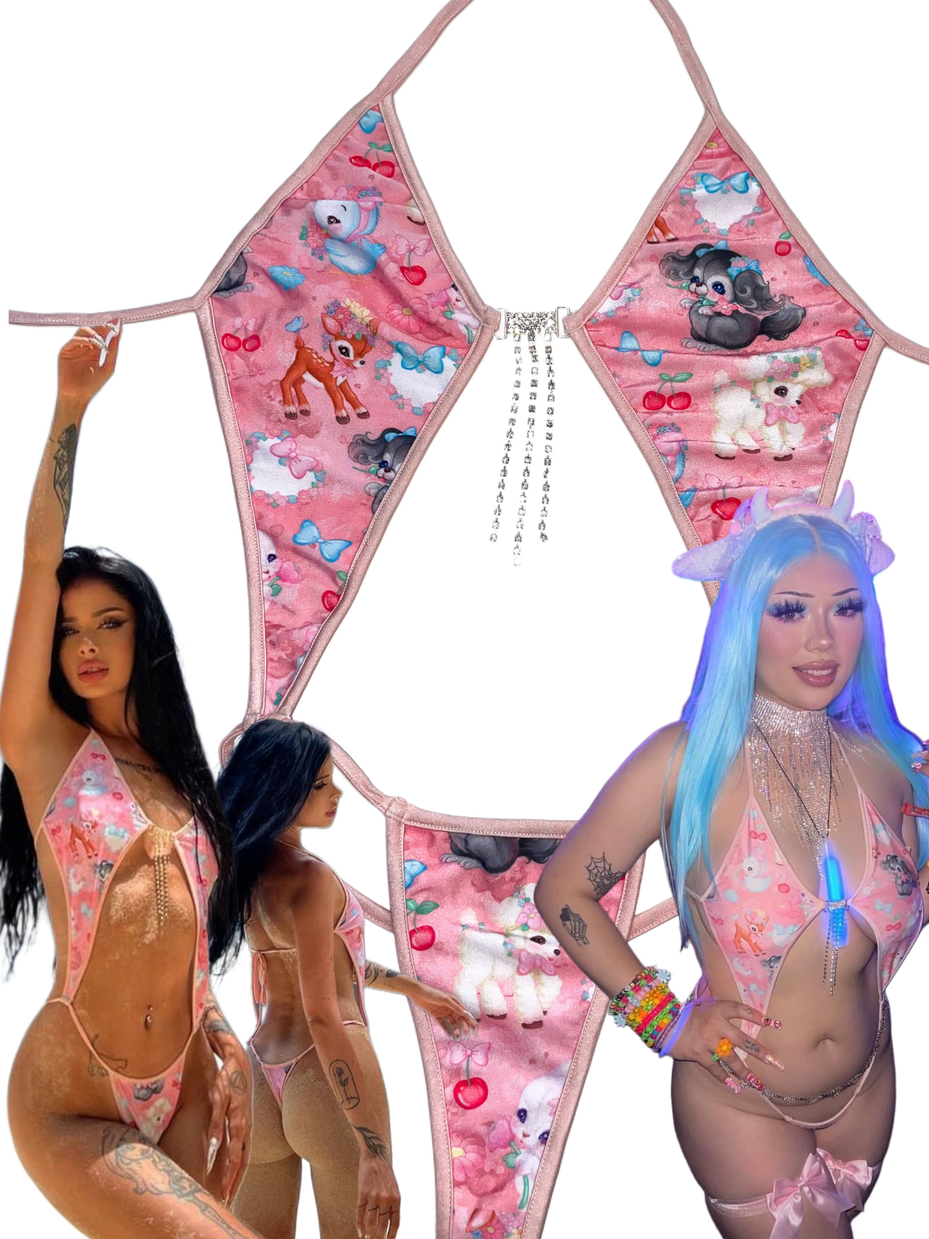 Lil bow peep diamond sparkle one piece - Bikinis, Monokinis, skirt sets, and apparel inspired by strippers - Bubblegum The Brand