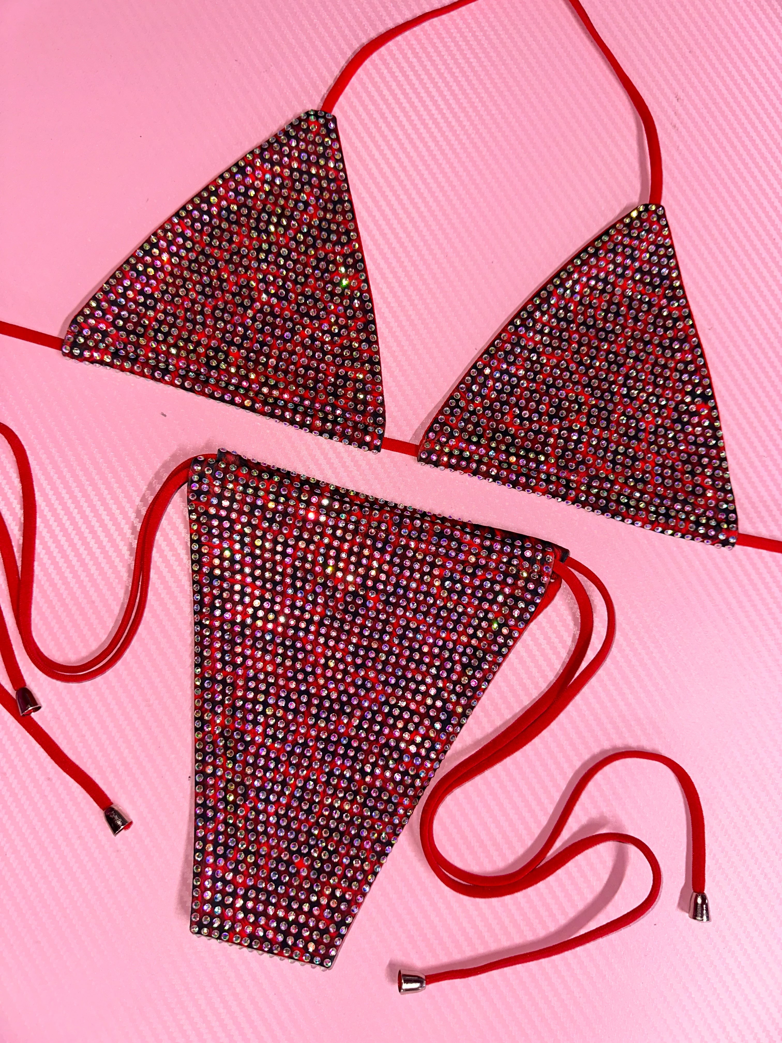 Red Leopard Razzle Dazzle cheetah iced out rhinestone bikini